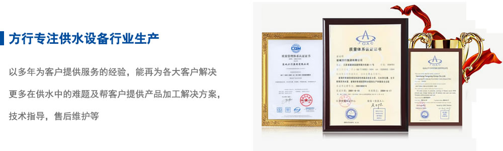 鹽城方行集團(tuán)有限公司秉承“務(wù)實(shí)、誠信、拼搏、創(chuàng)新”的企業(yè)精神,經(jīng)歷了近數(shù)十年的歷程取得了跨越式的發(fā)展。高起點(diǎn)才會(huì)有更高的品質(zhì),優(yōu)雅的環(huán)境,先進(jìn)的設(shè) 備,高效的團(tuán)隊(duì),造就了一批批優(yōu)質(zhì)的產(chǎn)品。堅(jiān)持質(zhì)量、用戶至上的宗旨,公司全面通過了ISO國際質(zhì)量體系認(rèn)證,是制造供水成套設(shè)備廠家 之一。經(jīng)悉心打造,已享有較高的知名度,產(chǎn)品遍布全國,不斷研發(fā)全新產(chǎn)品,滿足消費(fèi)者的需求 | |